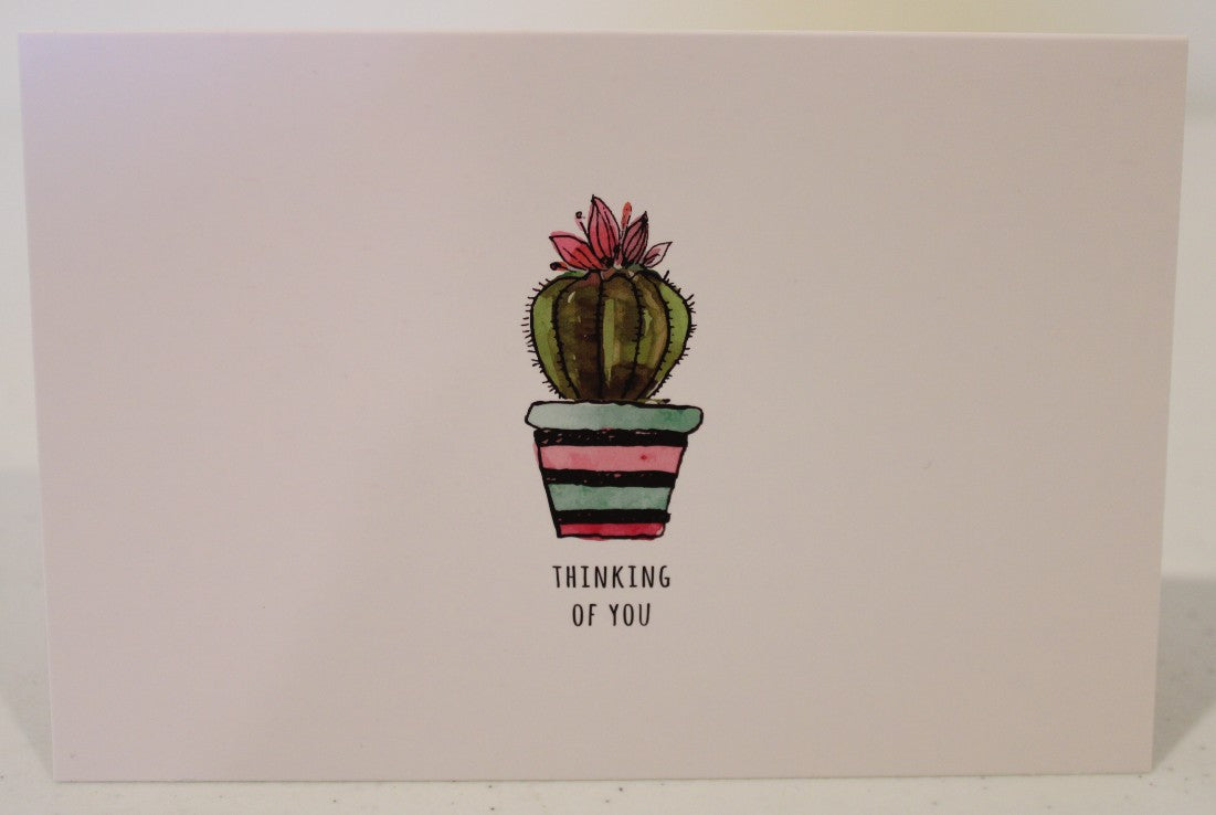 A simple colorful cactus "Thinking of you" card, blank on the inside. Perfect for sending a thoughtful message to compliment your purchase!