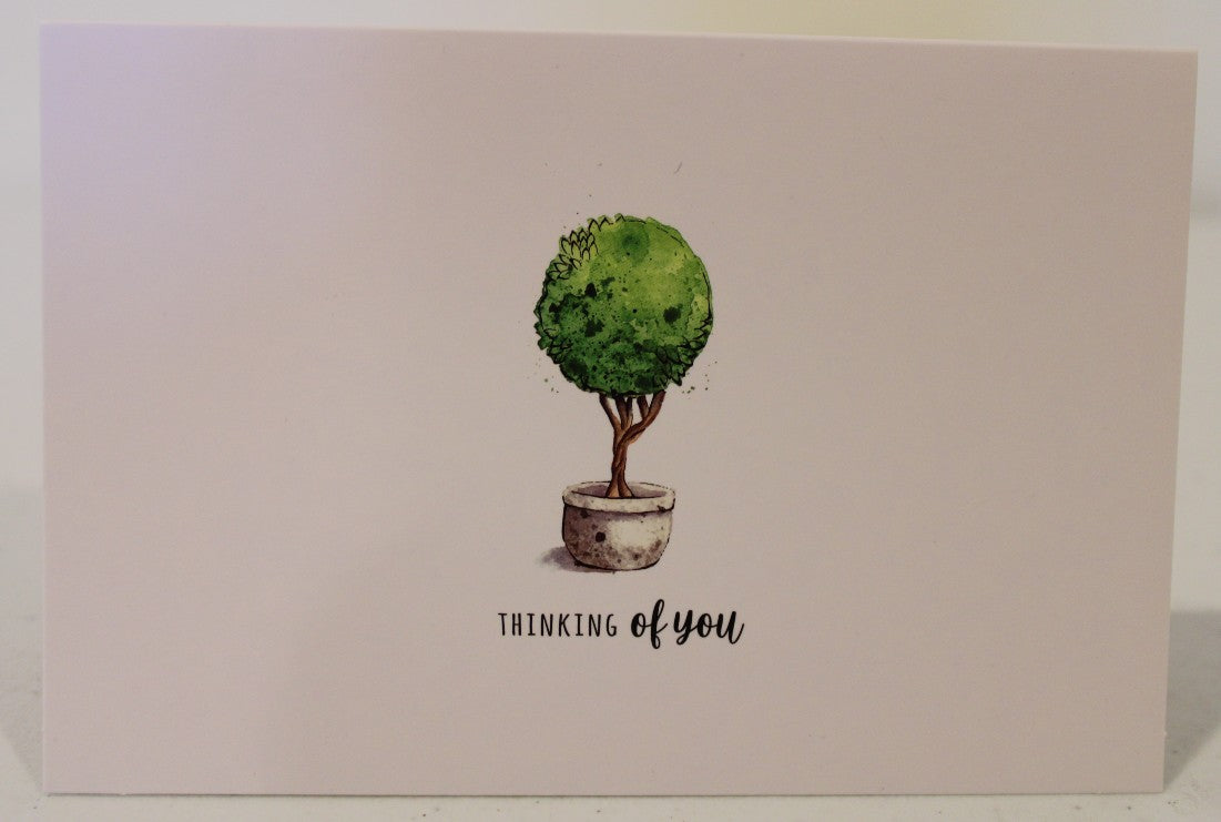 A simple planter tree "Thinking of you" card, blank on the inside. Perfect for sending a thoughtful message to compliment your purchase!