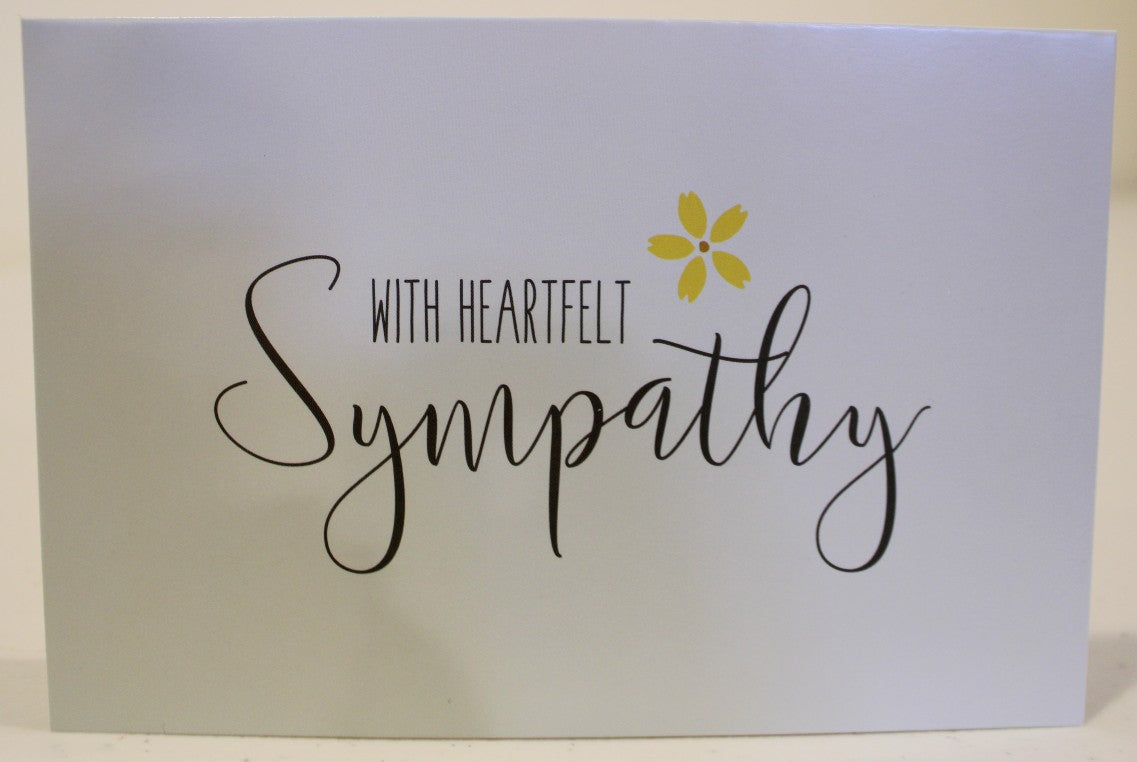 A simple "Sympathy" card, blank on the inside. When checking out, there is a section at the cart checkout page where you can leave any note you'd like and we'll put it inside the card. Card measures 6" x 4" and includes an envelope and sticker to seal shut. (Note: The Sympathy card may be this exact card or one very similar)